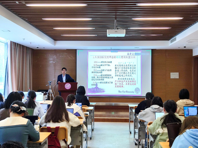 其次,刘凤义教授向同学们讲解了我国经济高质量发展的内容。他指出从贯彻新发展理念的维度来看,新发展理念体现生产力和生产关系的辩证统一关系,本质也是新发展规律,符合新发展理念的发展就是高质量发展;从经济有机体四环节的维度来看,实现生产、流通、分配、消费循环畅通的发展才是高质量发展;从供求关系的维度来看,高质量必须提供有效供给,满足人民多样化、高品质的需求。