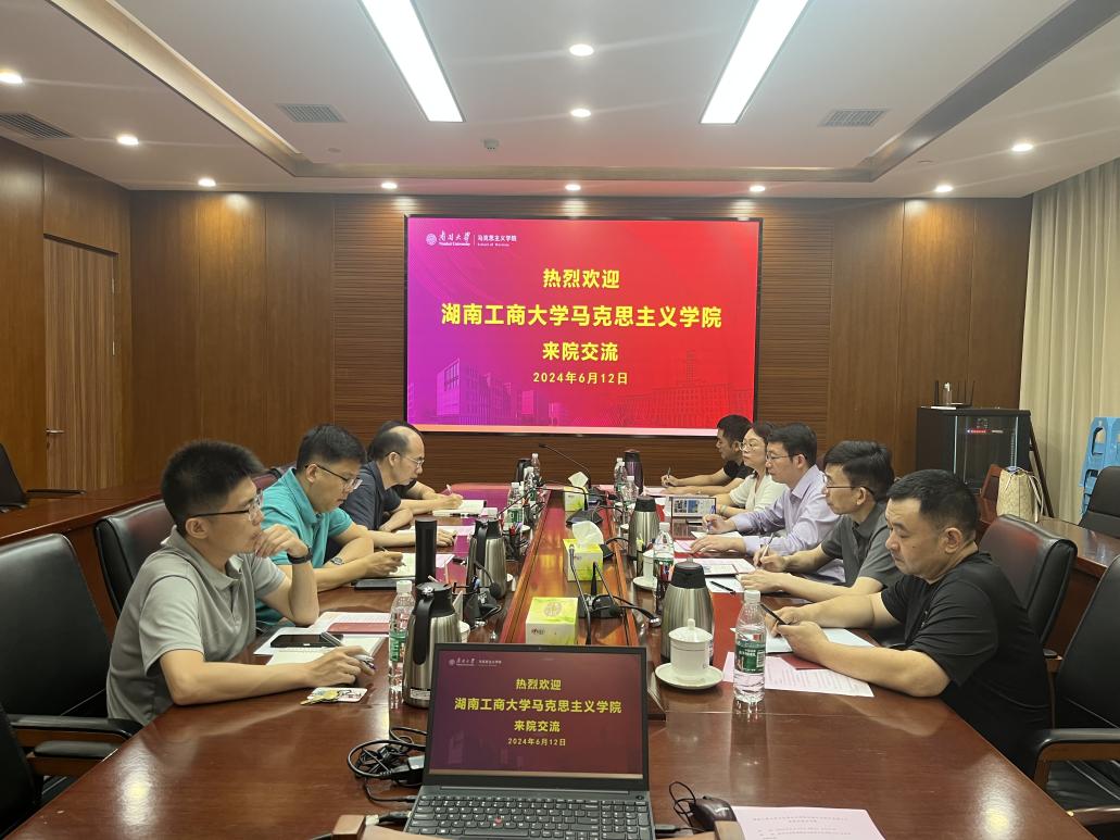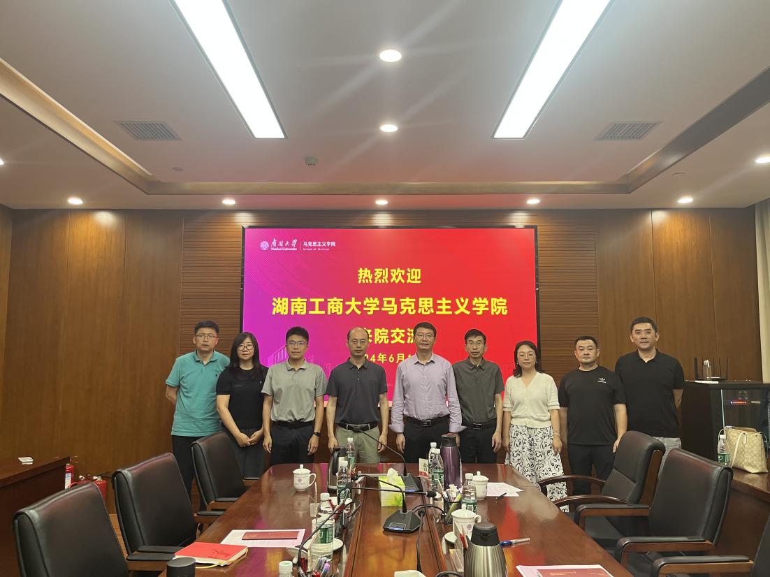 6月12日上午,湖南工商大学yl6809永利经理聂智、副经理陈飞虎一行到公司开展调研交流。公司常务副经理余一凡、教师代表任铃、刘一博、常宴会一起参加交流。交流会上,双方围绕思政课建设、团队建设、团队队伍建设和人才培养等方面进行了深入的探讨交流。