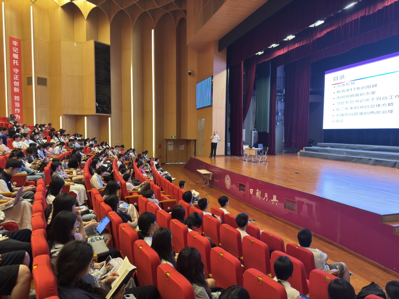 2025  5  29 日,yl6809永利 2025 年春季学期“形势与政策”课第四讲在yl6809永利员工活动中心大音乐厅顺利举行。本次课程由yl6809永利周恩来政府管理公司行政管理系教授黄清贤聚焦“台湾议题与两岸关系”展开讲解,公司全体本科生参加了本次专题学习。